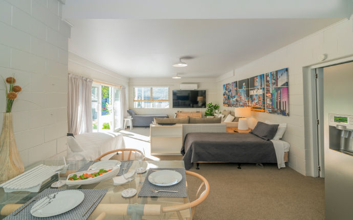 Experience our upgraded suites, (some bathrooms yet to be improved ) to a boutique offering, adorned with superior beds, elegant furniture, and stylish decor, ensuring a touch of luxury during your stay. Start your day on the small sun-drenched deck and garden outside the Oceans 88 suites, perfect for a delightful morning coffee before venturing out to explore the myriad of activities and breath taking scenery of Mercury Bay. Return and unwind by the pool with a refreshing beverage, recounting the day’s adventures.