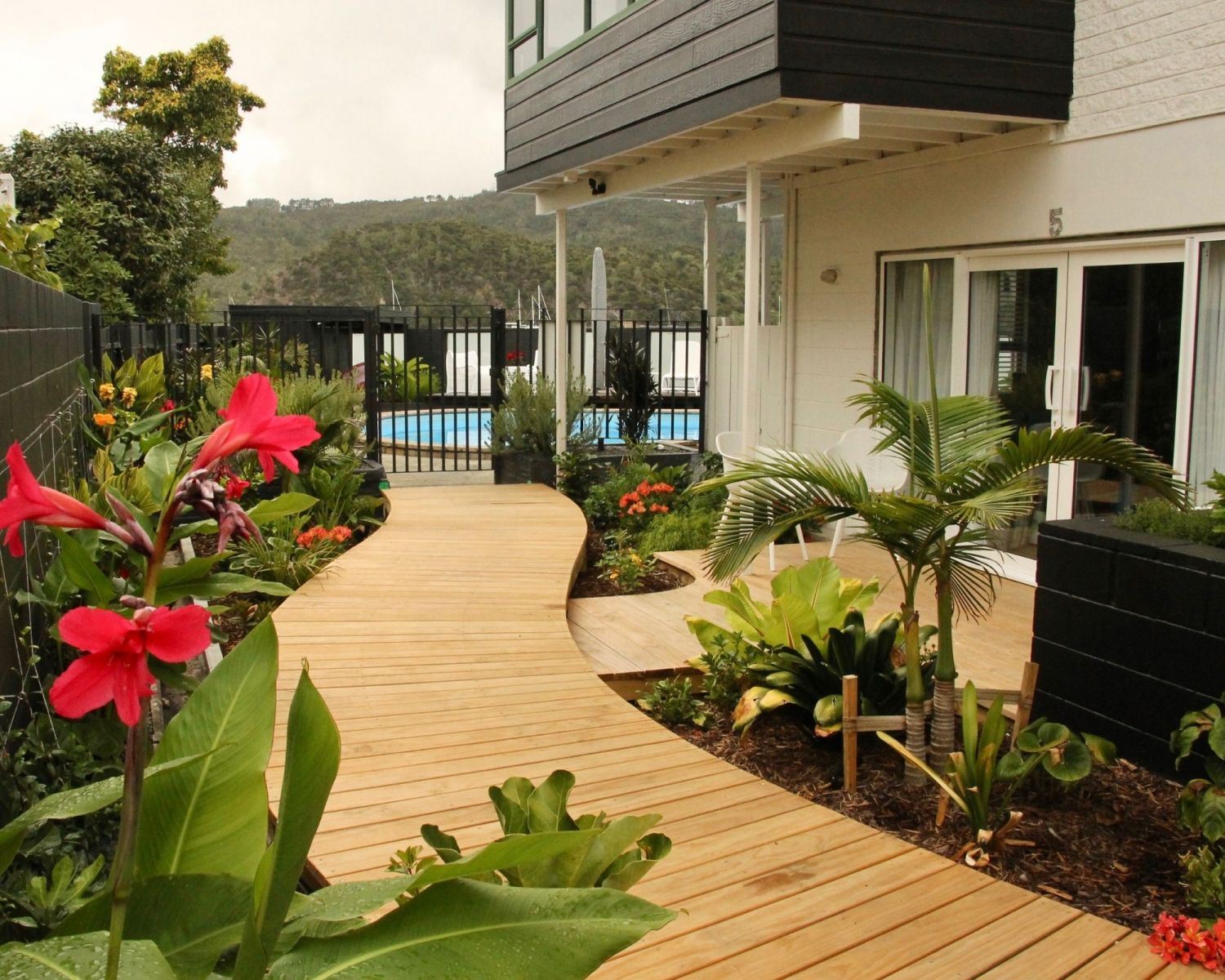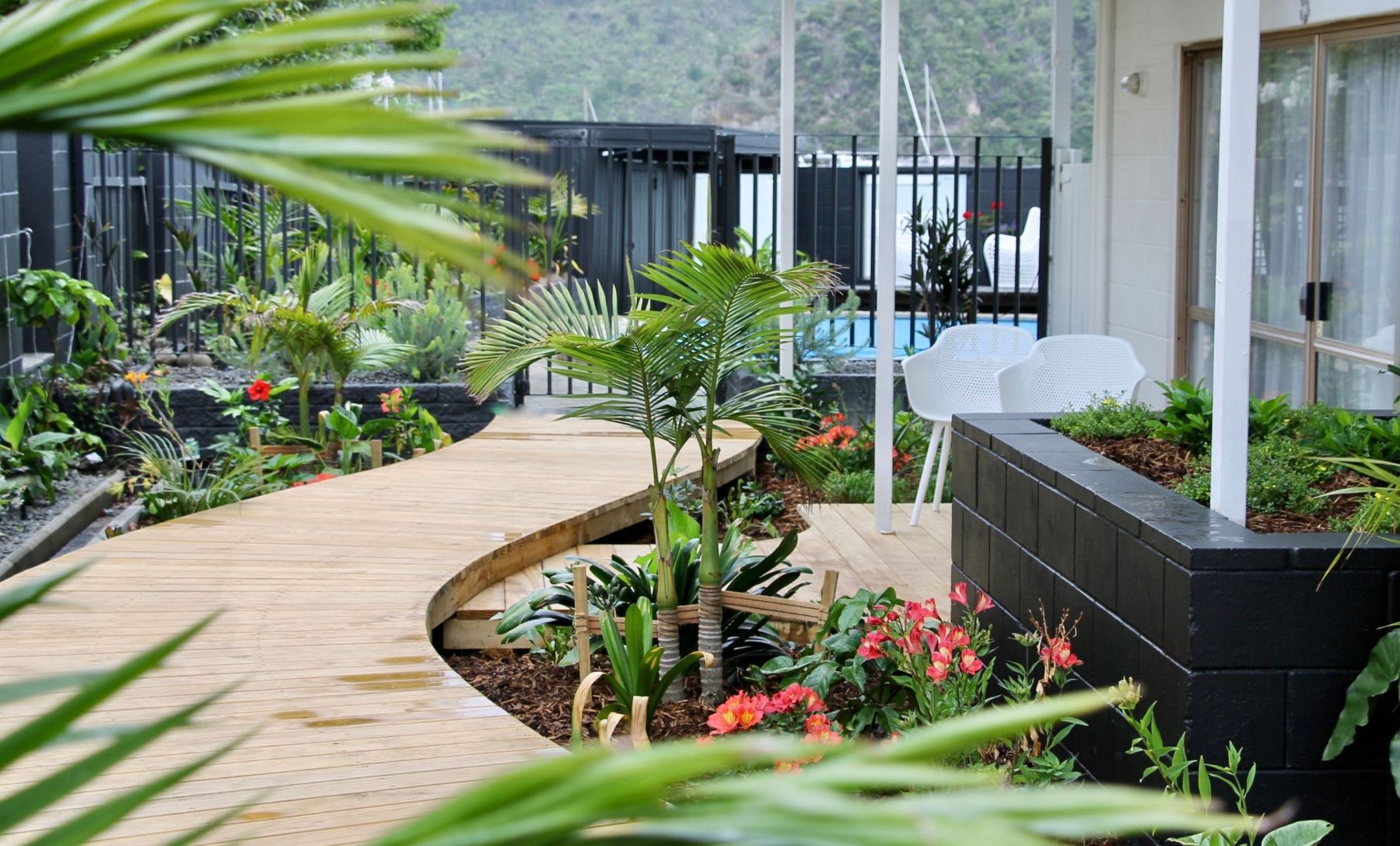 Immerse yourself in the vibrant ambiance of Manhattan—a feature wall adorned with pictures of New York art sets the scene for this stylish retreat. Whether you’re seated at the breakfast bar savouring a morning coffee or basking in the sunlight on the sunny deck adjacent to the tropical boardwalk, the Manhattan suite offers views across the pool and harbour.